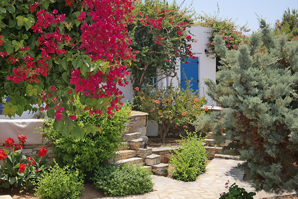 The serene environment, the traditional architecture with view of the Aegean and the garden that surrounds the apartments, will offer you vacations that you will definitely remember for a long time!