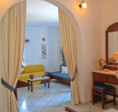 Our Apartments offer a stunning, intimate hideaway for two or families on the beautiful island of Naxos. Here you will find the perfect retreat on Naxos with its colourful villages, beaches, tavernas and seascapes. Sun Rock occupies a unique spot which combines all the magical ingredients of this incredible island for a holiday that is dream-like and unforgettable. Sun Rock Boutique Apartments are completely independent and self-contained. All units offer a fully-equipped kitchen, bathroom with shower, dining area, a king size bed and a sitting area with two sofas that can convert into beds and accommodate extra guests.